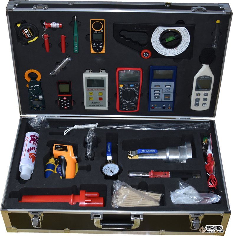 配置:不銹鋼感煙探測器試驗裝置;不銹鋼感溫探測器試驗裝置;水噴淋系統試水檢測裝置;消火栓系統試水檢測裝置;數字兆歐表;數字噪音計;數字微壓計;數字測距儀;紅外測溫儀;垂直度測定儀;多功能工程坡度測定儀;四合一測量儀(溫度、濕度、風速、照度);鉗形電流表;數字萬用表;數字秒表;附件:數字試電筆、鋼卷尺、連接桿、注入器、霧香液、扳手、充電器、電池桿、儀表測試筆、多功能刀。